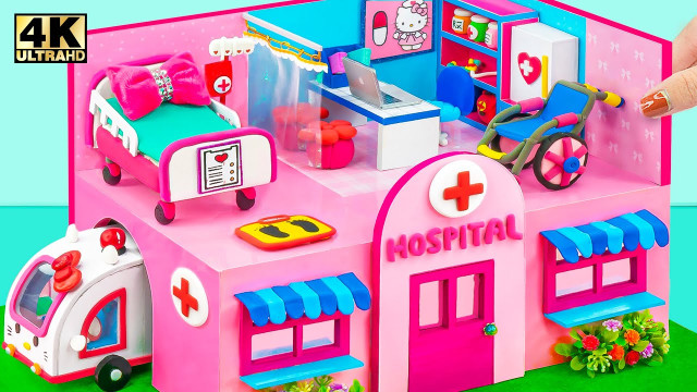 How To Make Pink Miniature Hospital and DIY Doctor Set, Medical Kit from Polymer Clay, Cardboard